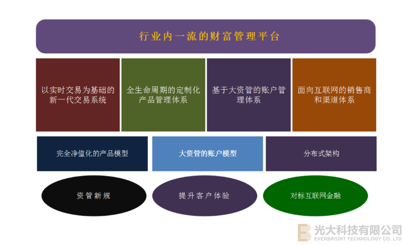 新系統實現了建立健全產品體系、統一客戶識別、拓展銷售渠道、完善交易功能、建立電子化產品審批、優化客戶服務,為未來10年的理財產品和銷售的創新發展打好了堅實基礎。