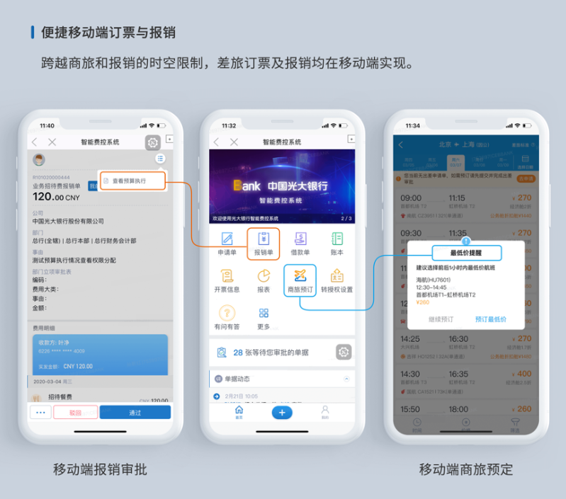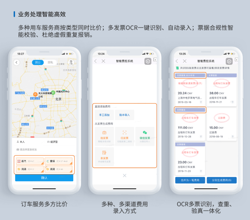 一站式移動費控及差旅解決方案。通過基于機器學習的OCR多圖一鍵識別、票據影像電子化、全流程多系統集成、微信等社交工具嵌入等多種技術手段,全面革新員工的差旅和報銷方式,重構審批流程、提升用戶體驗,實現從費用申請、消費、報銷、審批到支付結算的全線上化;同時助力企業多維度費用合規管控和降本增效,為企業提供高效便捷、開放智能的費控差旅產品及服務。